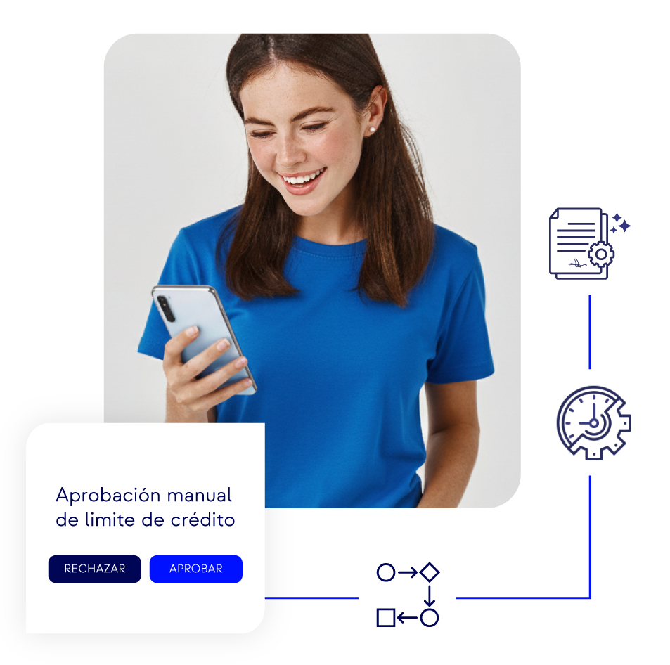 Permite configurar las fases y pasos necesarios para la originación de un producto, integrando la recolección de datos, la autenticación, la evaluación de riesgos y la generación de documentación.